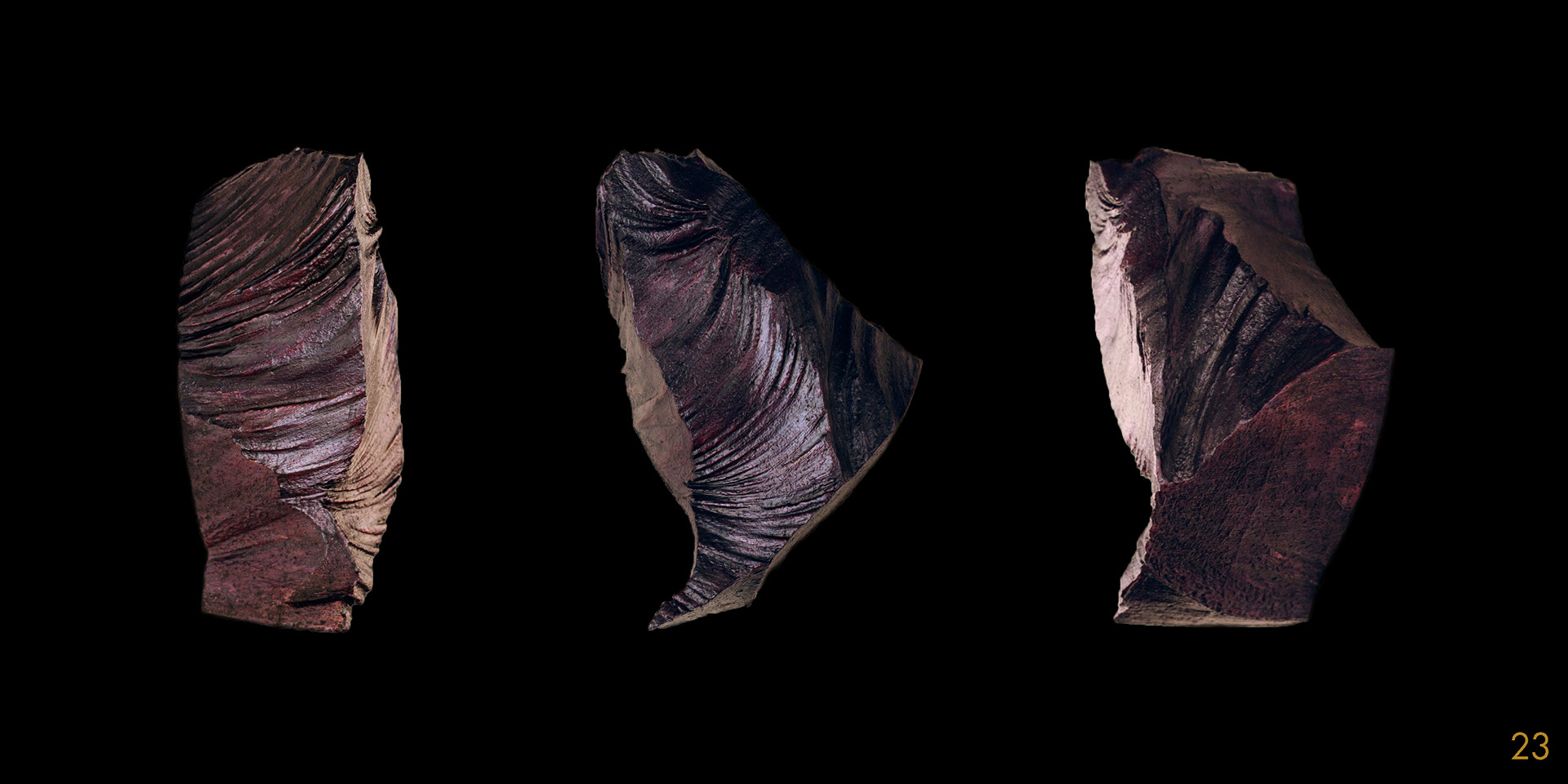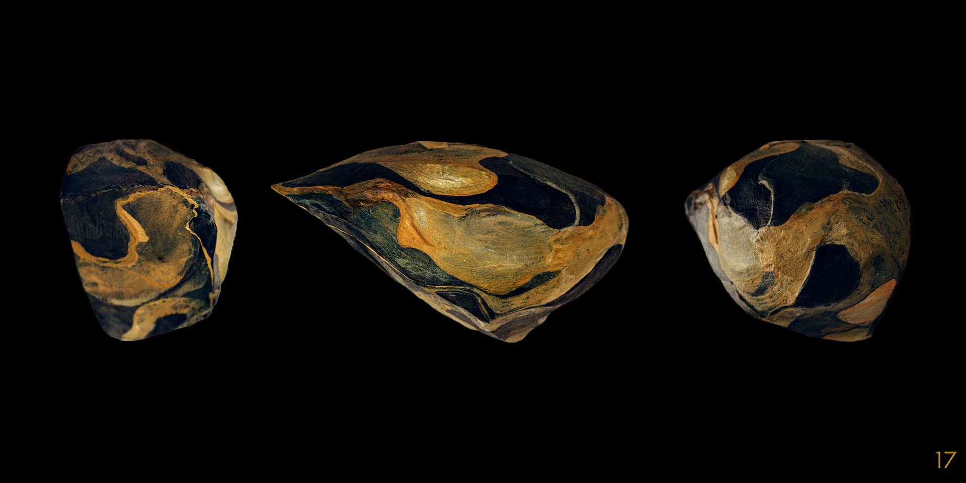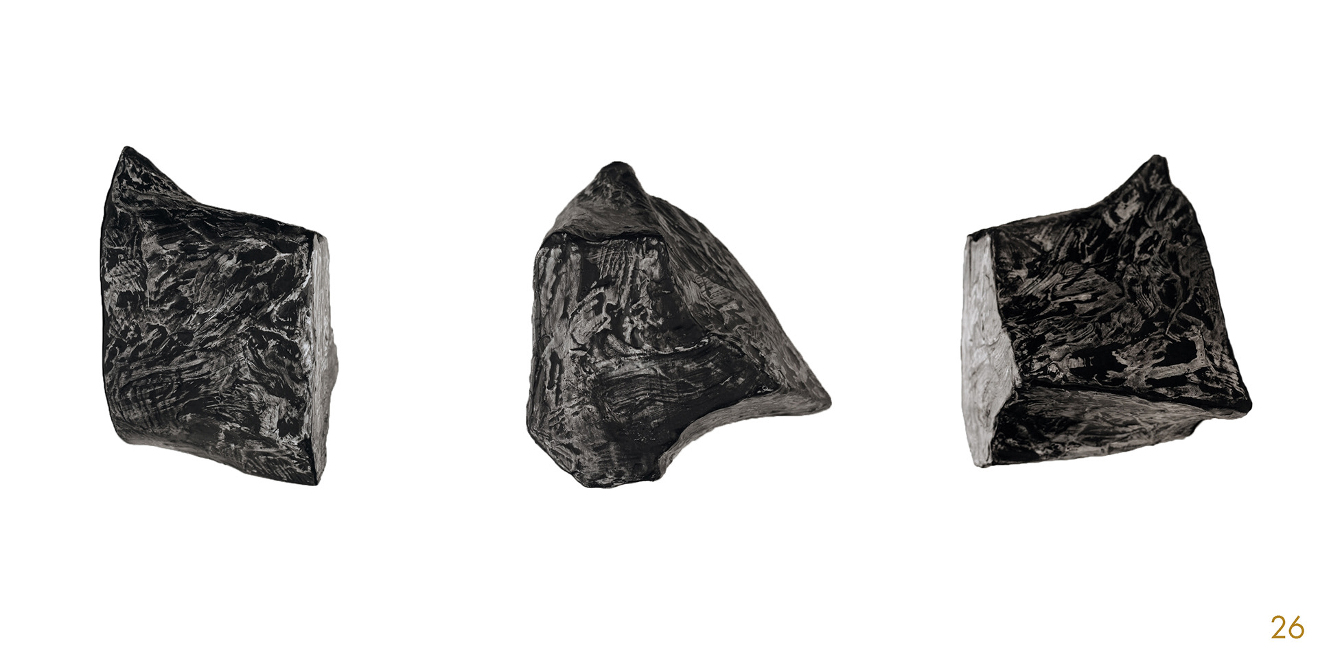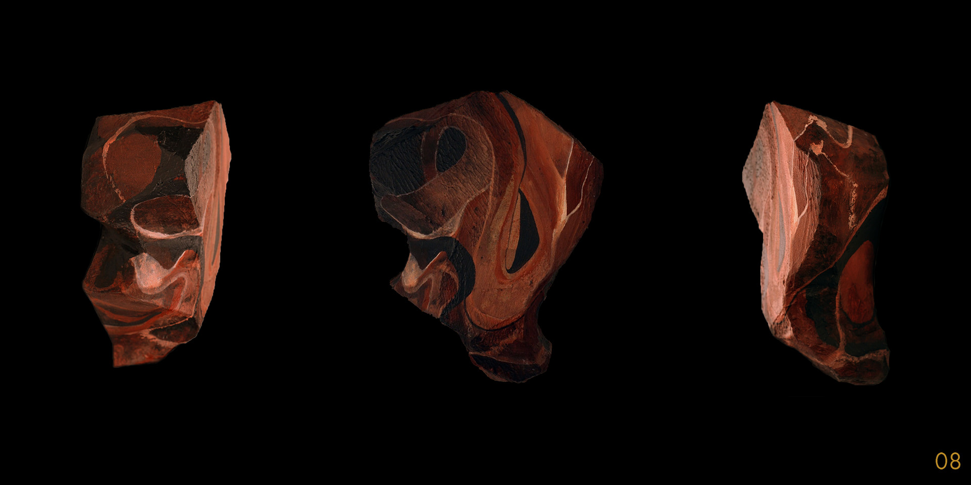 This series and process of making the 40 acrylic on polystyrene forms mimics my own midlife wrestling with mortality, illusion, and imperfection.